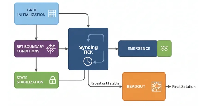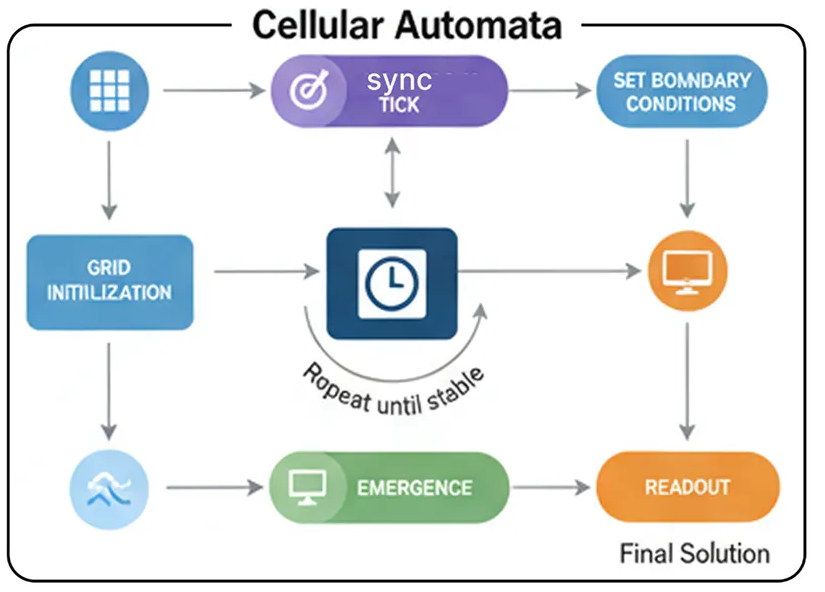 Представьте себе планирование логистики, моделирование заболеваний или моделирование роста городов. Это превращает само проблемное пространство в «вычислительную структуру», которая решает задачи посредством волнообразного распространения информации.