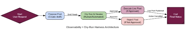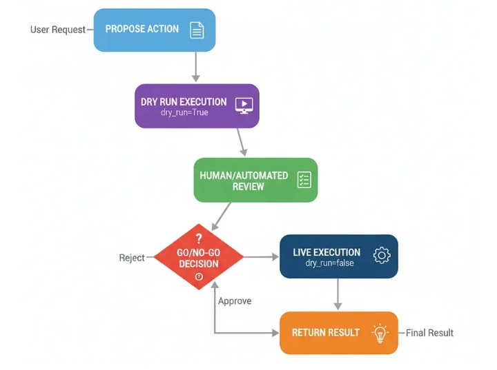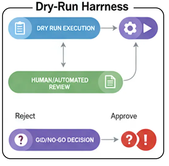 В любой крупномасштабной системе искусственного интеллекта, выполняющей необратимые действия, проверка работоспособности (Dry-Run Harness) является обязательной. Это заключительная проверка безопасности, которая отличает опытный образец от готовой к производству, заслуживающей доверия системы.