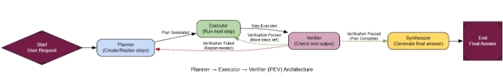 Теперь нам просто нужно соединить их в граф. Маршрутизатор проверит, остались ли в плане какие-либо шаги. Если да, он вернется к исполнителю. В противном случае он перейдет к заключительному шагу synthesizer_node(который мы можем повторно использовать из предыдущего шаблона) для генерации ответа.